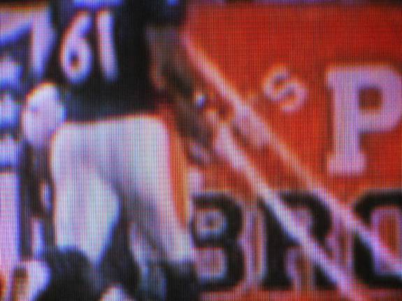Again, blown up and fuzzy, but you can see the brown blob between his body and hand.